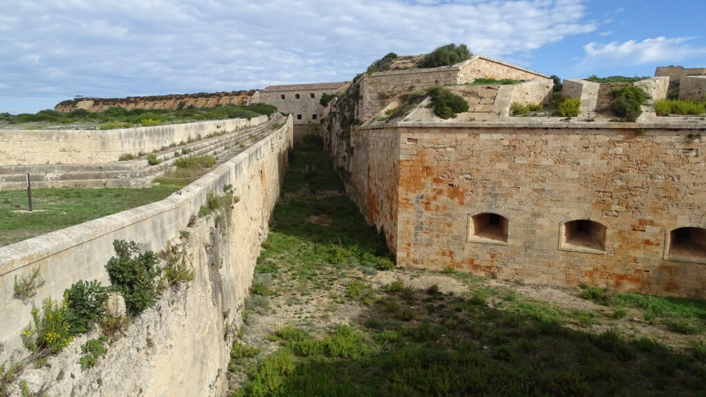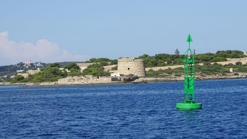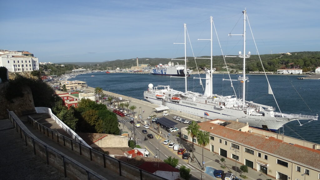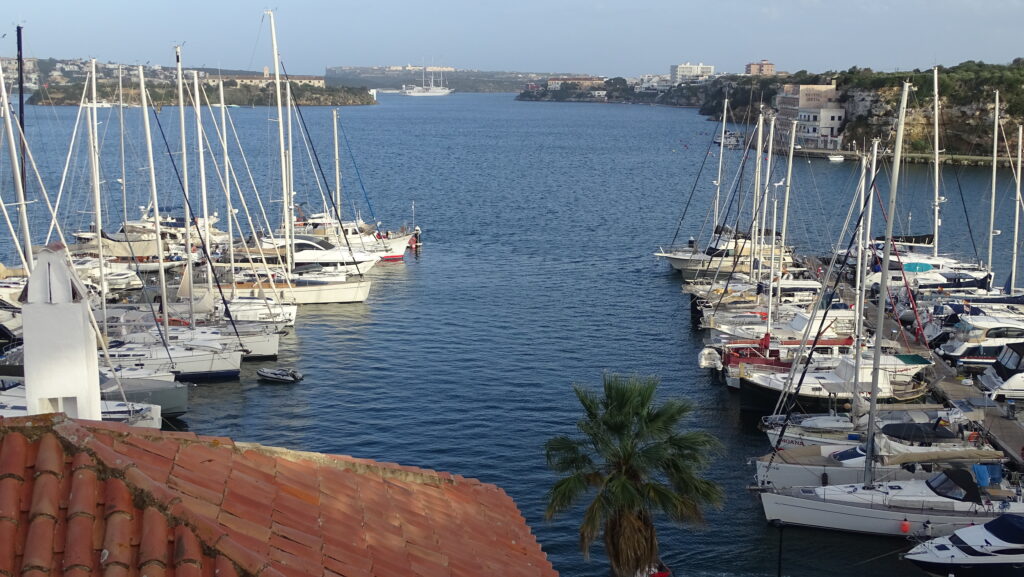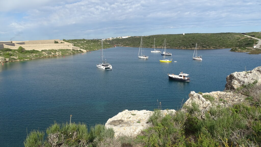 Ansteuerung Menorcaunser Ankerplatz, ganz rechts liegt unsere MoanaGewaltige Festung, hier hat Abschreckung funktioniert, sie wurden nie angegriffen3 Nächte in der Marina für Sightseeing und Einkauf