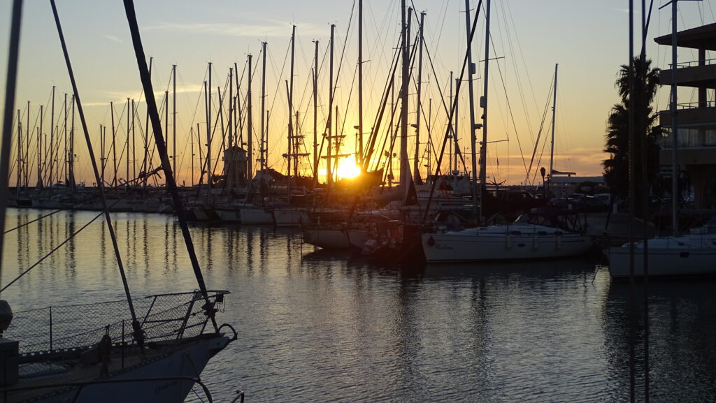 Weil die Winde passten haben wir die 400sm von Menorca nach Almerimar in unser Winterlager ohne Stopps auf Mallorca und Ibiza gemacht. Am Ende nahmen wir die Segel immer mehr weg, bis wir ohne Segel zeitweise auf 4,5kn kamen.